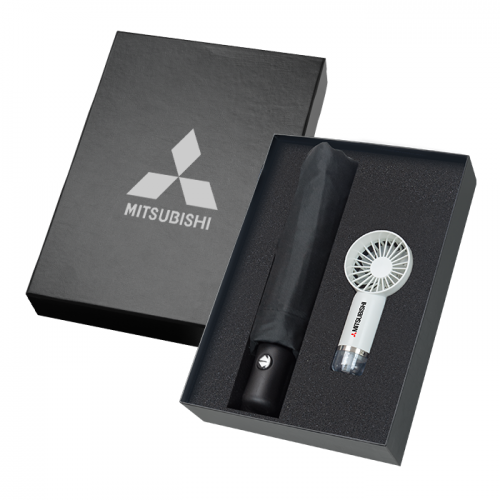 Remarks | - GB0036: Black Gift Box - BUMB0163: VELORA 21" Auto Open and Close Foldable Umbrella - BHA0327: AIRBOOST Rechargeable Misty Air Fan |